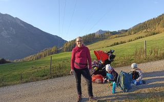 Na start jsme vyjeli autem (parkování zdarma na parkovišti u sjezdovek), tam jsme nechali auto, které si potom Petr jel později vyzvednout autobusem. Celou trasu jsme šli bez problému s cyklovozíkem. Všude je potřeba počítat s krávama. Pěkná nenáročná trasa, pořád mírně z kopce.