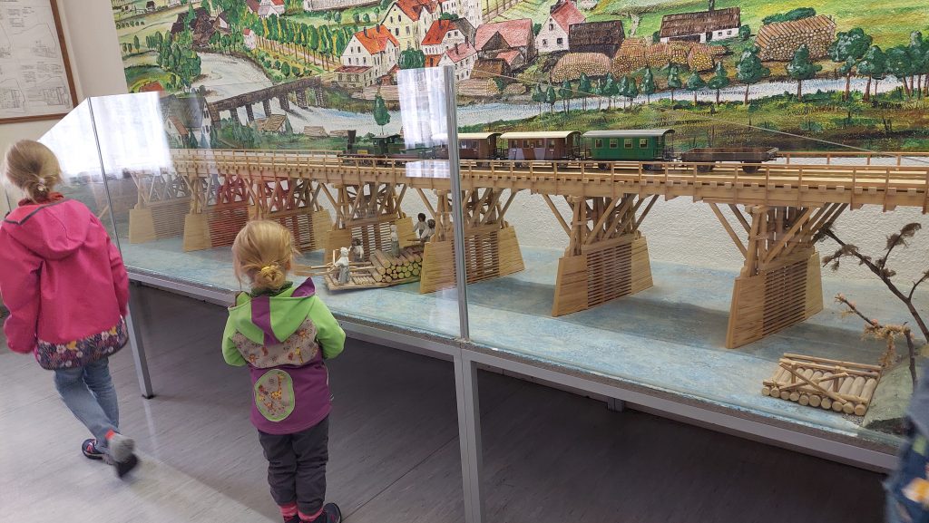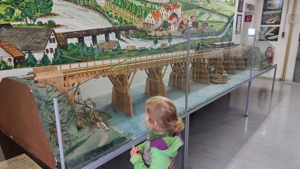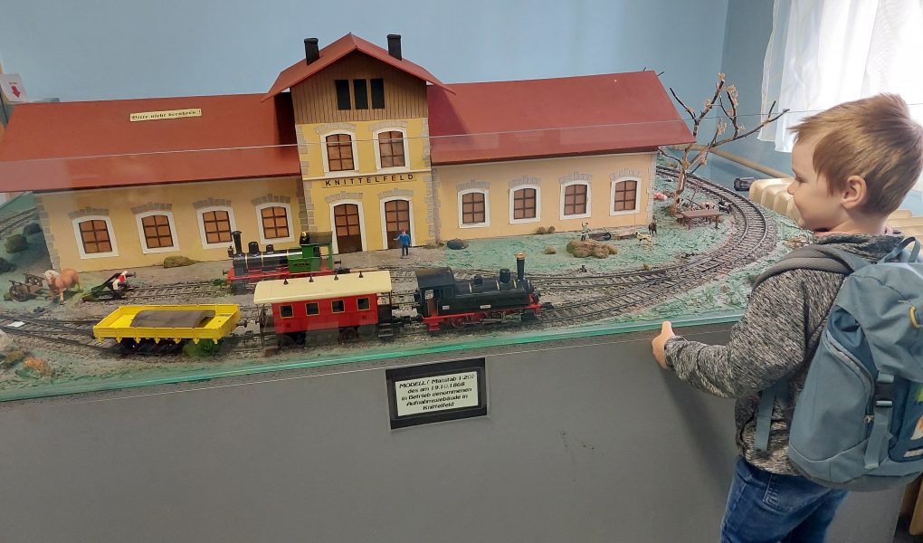 Do Knittelfeldu je to z Vordernbegu cca půlhodiny autem. Nebylo úplně ideální počasí, tak jsme vyrazili vyzkoušet železniční muzeum, které jsme měli zdarma v rámci Steiermarkcard. Muzeum není nijak moc velké a nemá žádnou speciální část pro děti, ale i tak se tam našim dětem líbilo. V tomto muzeu jsou jenom modely vlaků (a uniformy, nádražní expozice, jídelní expozice apod.), naproti tomu v železničním muzeu v Mürzzuschlagu jsou vystavené skutečné vlaky. Nadšence do mašinek určitě zaujme obojí. Z Knittelfeldu už je to kousíček do Zeltwegu, kde je vojenské muzeum.