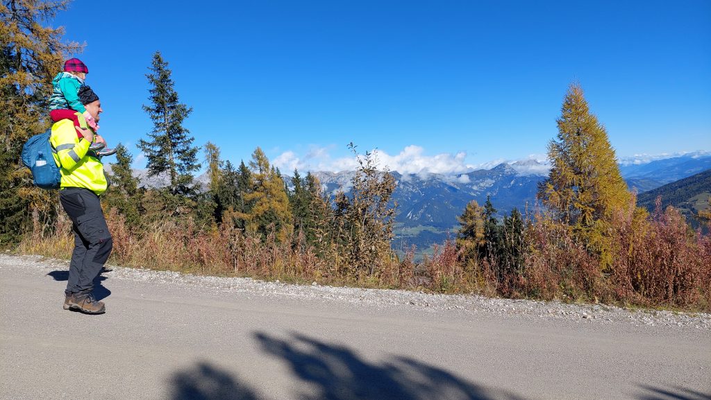 Hochwurzen je hora cca 1h40 minut autem od Vordernbergu a my měli místní lanovku zahrnutou ve Steierrmarkcard. Vypravili jsme se tam během podzimních prázdnin. Parkovali jsme u dolní stanice lanovky (parkování je zdarma).