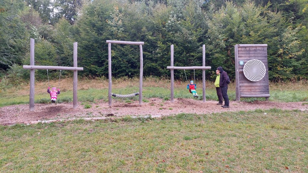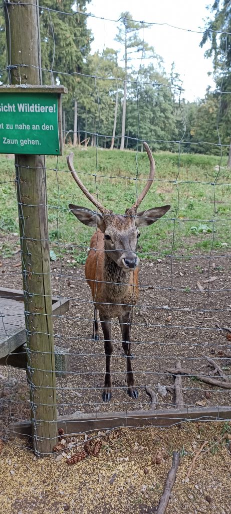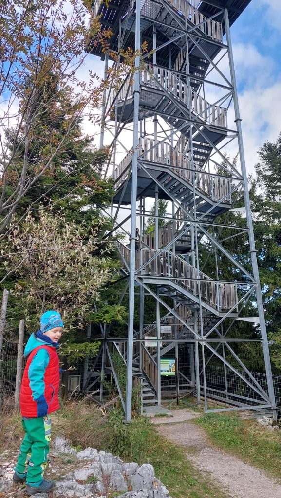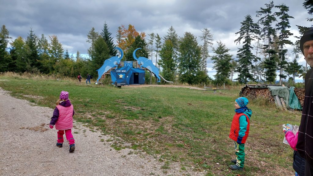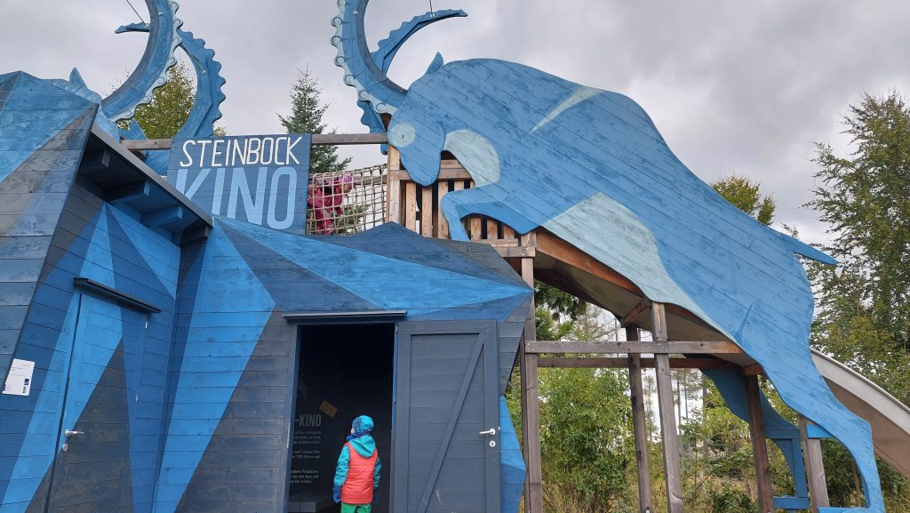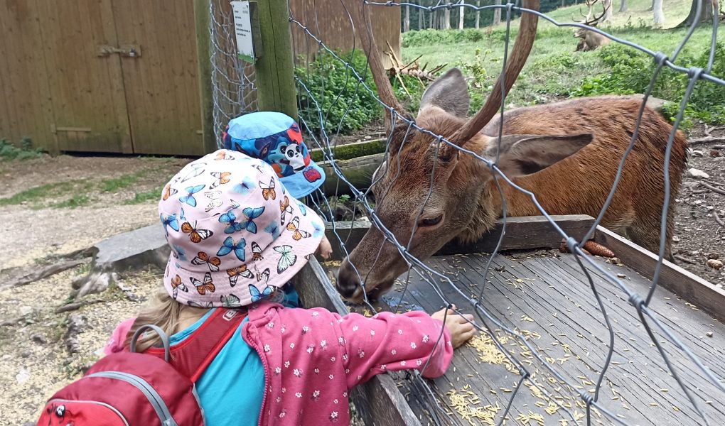 Jak jsme plánovali, tak jsme se sem po roce vrátili. Nemohli jsme vynechat jeleny. Na jejich krmení se děti moc těšily. Stavili jsme se tedy u jelenů a pak jsme šli prozkoumat druhou část se zvířaty a hřišti, co jsme minule nestihli. Pokud máte nemáte moc času spojit obě trasy dohromady, tak bych si vybrala tuto druhou (ale se zastávkou u jelenů, ti stojí za to). V této trase jsme se stavili i na rozhledně. Děti zaujalo Steinbockkino a opět několik hřišť.
