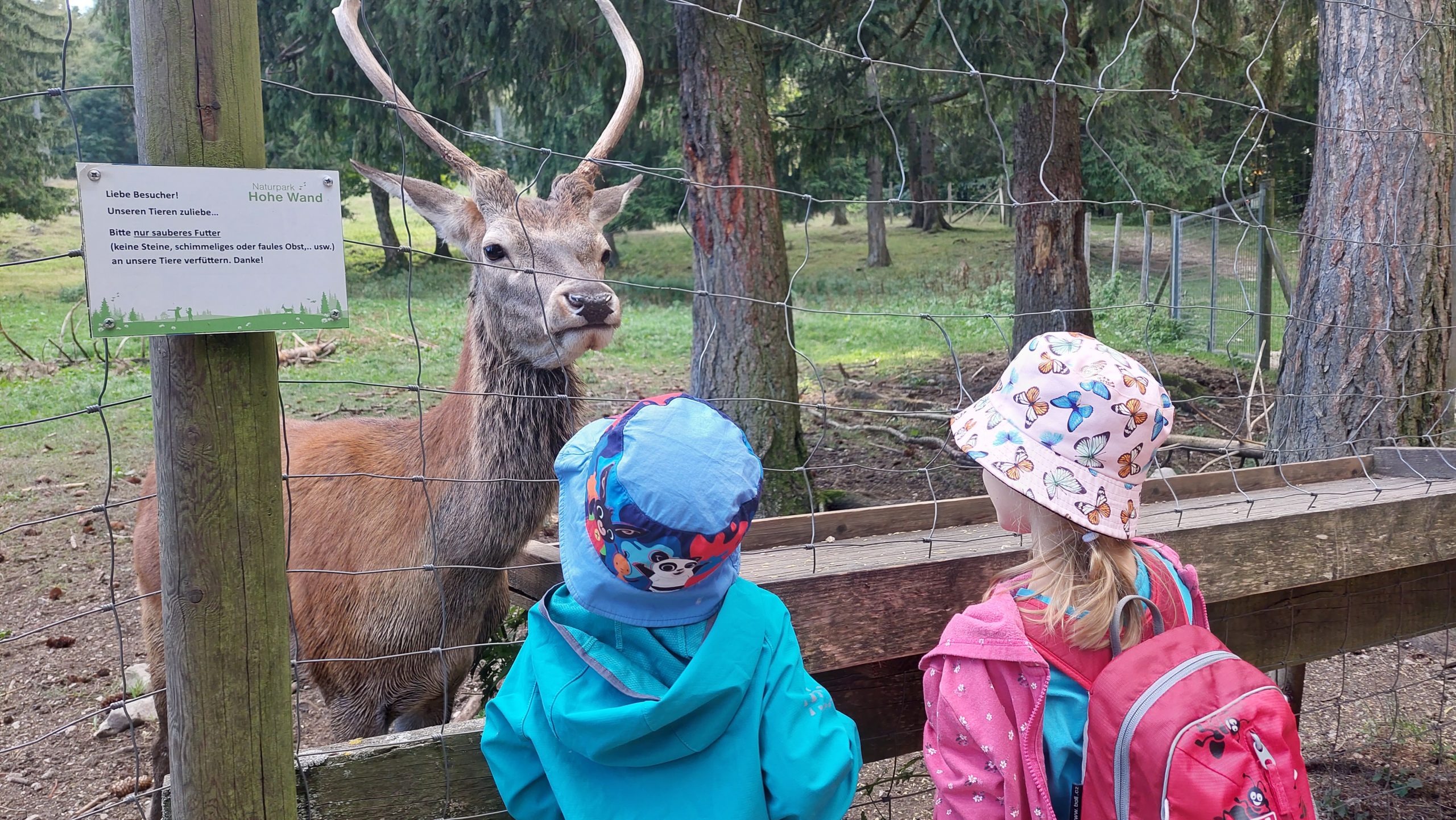 Přírodní park Hohe Wand se nachází kousek pod Vídní. My se tu stavovali cestou. Neměli jsme při naší první návštěvě moc času, tak jsme se stavili jenom v části se zvířaty a dětskými stezkami, ale nachází se tu i několik vyhlídek a dalších tras. Do parku se platí menší vstupné. Parkování na parkovišti u vstupu do parku je zdarma, ale je potřeba si vyzvednout parkovací kartičku při nákupu vstupného. Vstupné do parku je zahrnuto v Niederösterreichcard. Park je otevřen celoročně.