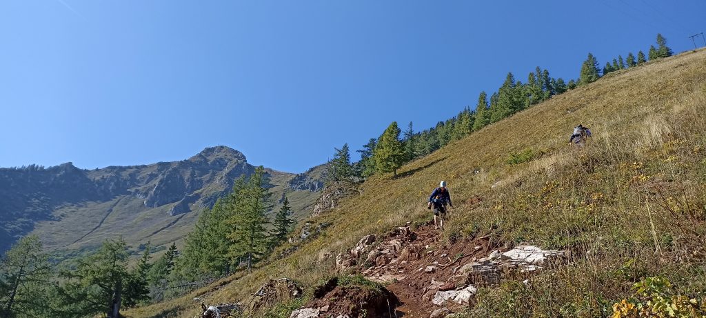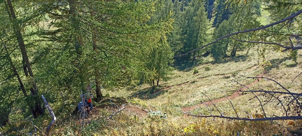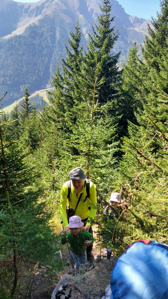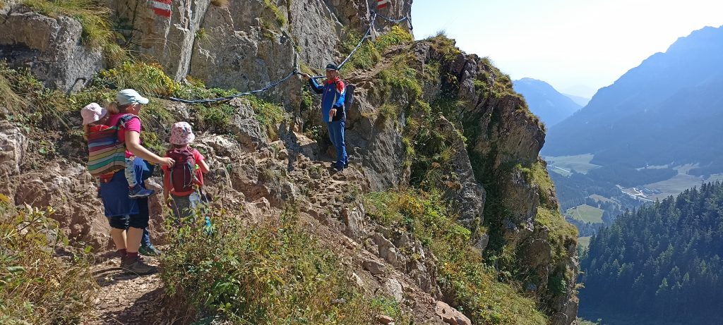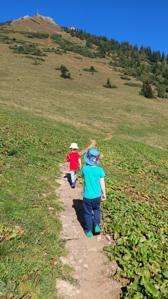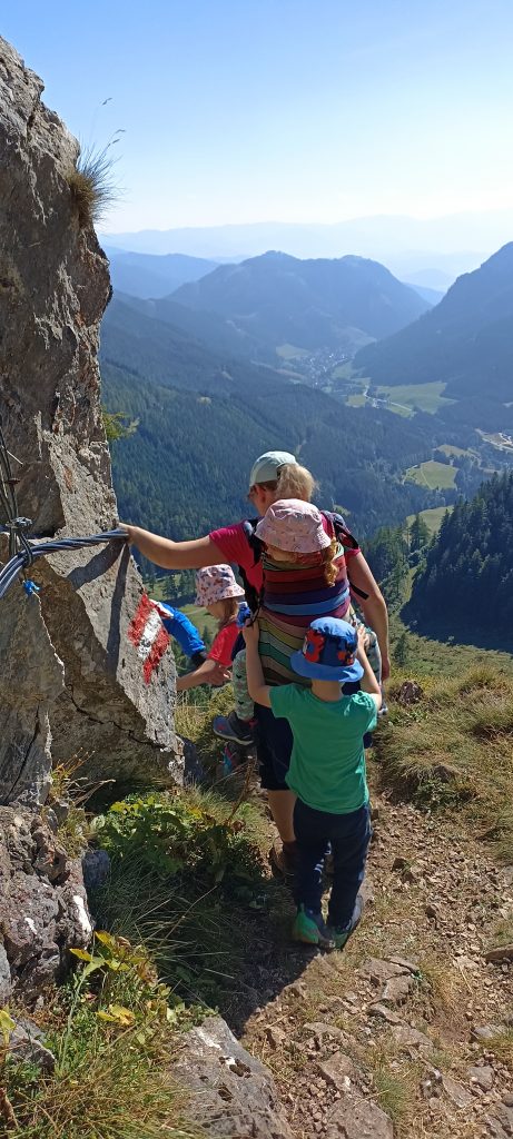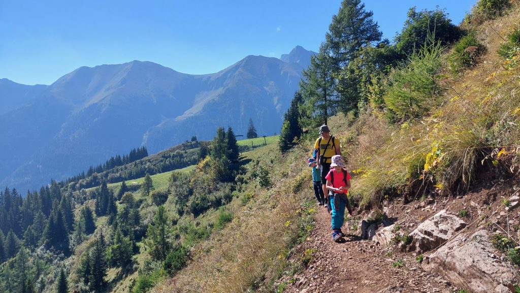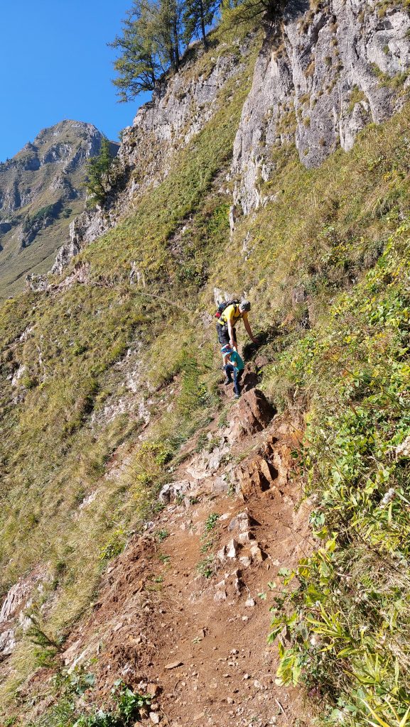 Zaparkovali jsme na Präbichlu (buď lze parkovat u lanovky na Polster zdarma nebo potom na parkovišti u nádraží, také zdarma) a vydali se po cestičce Knappensteig nahoru na Leobnerhütte. Cesta je to poměrně náročná, dost stoupá, často je úzká a někdy je i trochu problém identifikovat, kudy vlastně přesně vede (hlavně v místě přechodu sjezdovky).
