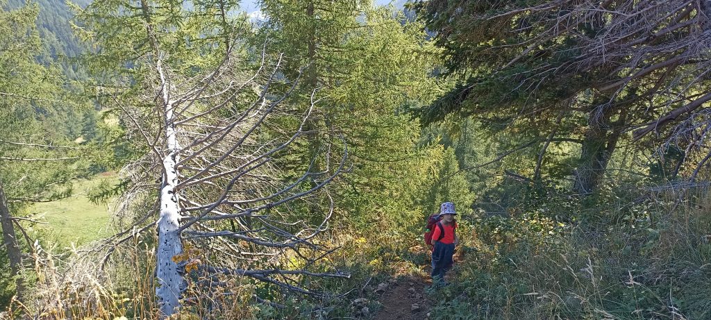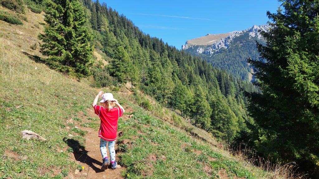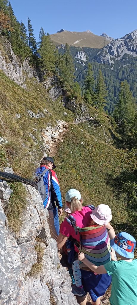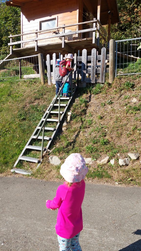Od Leobnerhütte jsme se tentokrát vydali rovnou dolů, po poslední cestě, kterou jsme v tomto místě ještě neměli vyzkoušenou. Je to dost prudká cesta s kamením a příště bychom asi vybrali raději o něco delší ale větší červenou cestu. Dole jsme se potom stavili na návštěvě za starými známými kozami, které tu bydlí v pěkném domečku.
