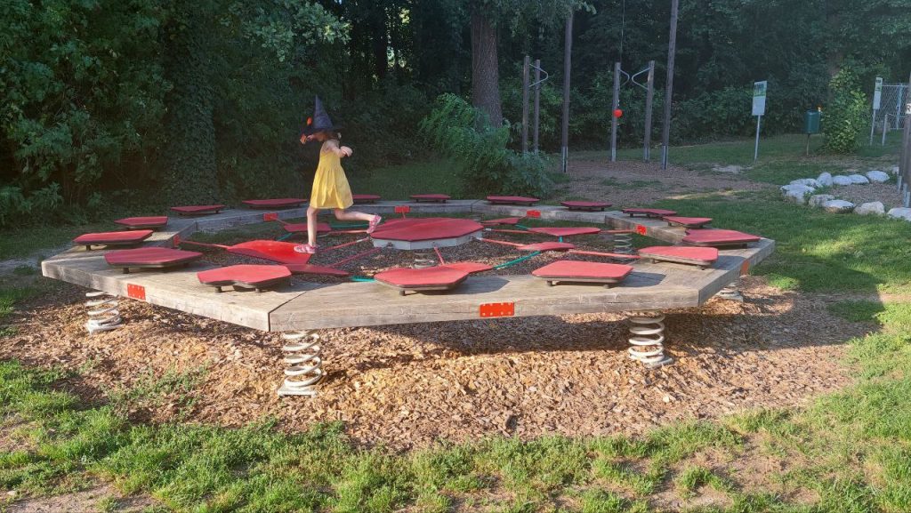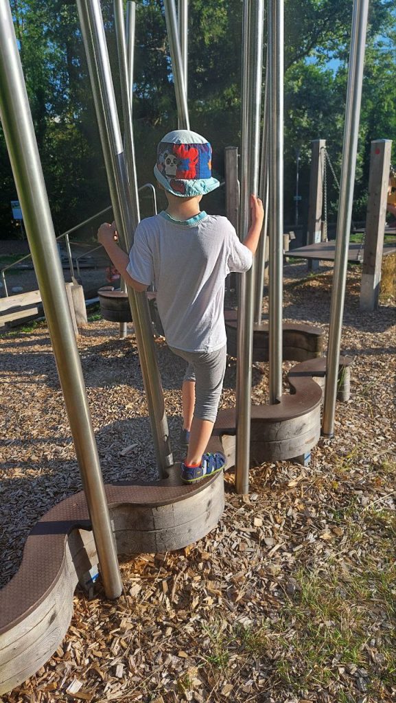 Hollbarun je městečko nedaleko českých hranic (z Břeclavi cca hodinu a půl cesty). Poprvé jsem na něj narazila v souvislosti s místním Motorikparkem a rozhodli jsme se tu zastavit, když jsme jeli Rakouskem z jižních Čech do Břeclavi. A ten Motorikpark fakt stojí za návštěvu. Parkovali jsme vždy na parkovišti hned vedle. Je to veliké hřiště pro všechny věkové kategorie. Je tu opravdu velké množství zajímavých hřišťových prvků, ale nečekejte tu obyčejnou houpačku nebo skluzavku. Prvky na rovnováhu jsou fakt vychytané. Také tu teče mělký potůček, který láká našeho Edu. Nechybí zde ani záchody. Vstup je zdarma. Více zde na stárnkách města. My tu byli už dvakrát. Jednou v srpnu v pondělí v podvečer, ve velkém vedru, kdy jsme tu byli v podstatě sami, a podruhé v teplý víkendový den v dubnu, kdy tu lidí bylo docela dost.
