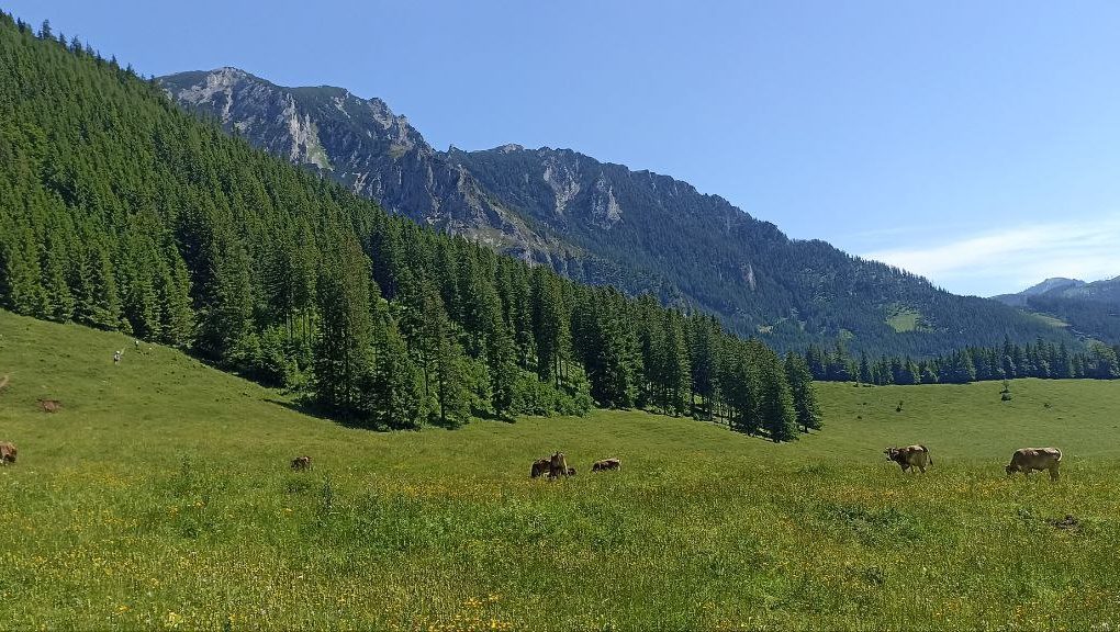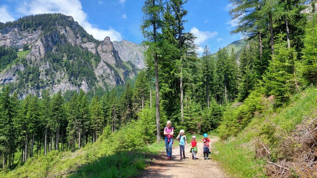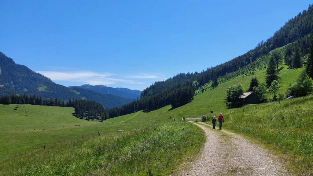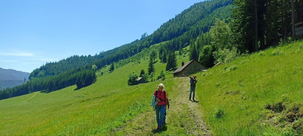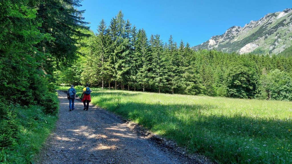 Oblast podél potoka Zölzbach je oblíbeným místem místňáků na procházky. Nejradši sem chodí brzo na jaře, když tu ještě nejsou krávy, a kdy je tu možné často vidět hodně svišťů. Nám to sem na jaře zatím ještě nevyšlo, a i když jsme od svišťů viděli jenom nory, tak je to pěkná a ne moc náročná procházka. Pozor, parkoviště je poměrně oblíbené, tak je třeba za pěkných dní vyrazit na výlet opravdu brzy, abyste zaparkovali. My jsme tu byli o červnové sobotě v deset a byli jsme poslední, kdo zaparkoval (zatím je parkoviště zdarma). Mimo krav jsme při naší návštěvě viděli i oslíky a lasičku. Trasu jsme si protáhli kolem chaty Hirnalm (zde je možné si koupit občerstvení). Je možné parkovat i u chaty, ale podle cedule dole je parkoviště jenom pro její zákazníky, takže byste se tu měli správně občerstvit.