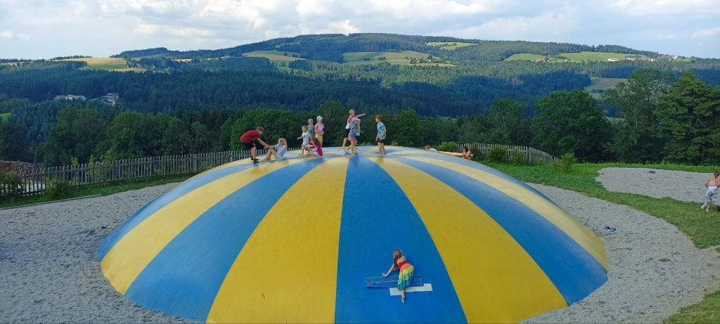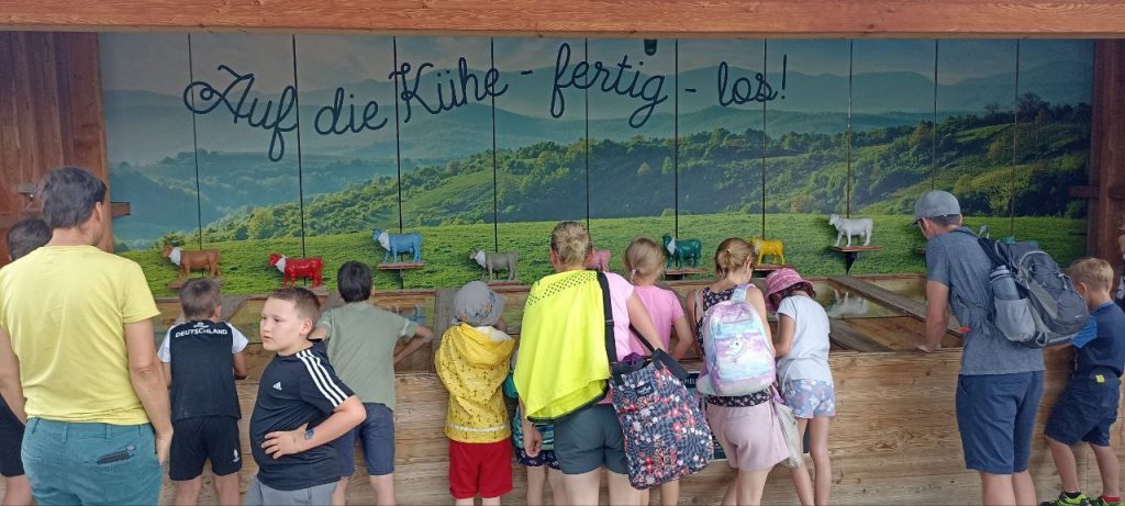 Vedlejší Eis-Zeitreise určitě taky stojí za návštěvu, ale je dobré umět německy, abyste z toho něco měli. I když naše děti zatím německy neumí a užily si to taky. Vstup je možný od 4 let. V moderní expozici se seznámíte s vývojem zmrzliny v čase (v „jedoucím vlaku“), s továrnou (ve „výtahu) a samotnou výrobou zmrzliny „v ledadle“, které se nejenom naklání, a fakt to stojí za to, akorát je třeba mít silnější žaludek, ať se vám z toho naklánění neudělá třeba špatně. My měli oba namále 🙂 , ale děti byly všechny nadšené a nejstarší dcera prohlásila, že to byl její nejlepší zážitek a že by hned prohlídku Eis-Zeitreise chtěla okamžitě absolvovat celou znovu. Na konci dostanete vzorek výborné zmrzliny (3 druhy, tak akorát porce).