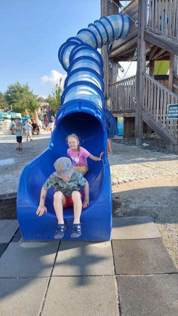 V samotném parku je spousta závavy pro děti – vysoké skluzavky, menší horská dráha (na té jsme nebyli, byla tam dost fronta), kuličkodráha, různá hřiště a hry, ale hlavně velký areál s různými vodními prvky, takže je určitě dobré se sem vydat za teplého počasí, aby si děti mohly užít i vodní část. Děti byly z parku nadšené a prý sem budeme muset někdy znovu.