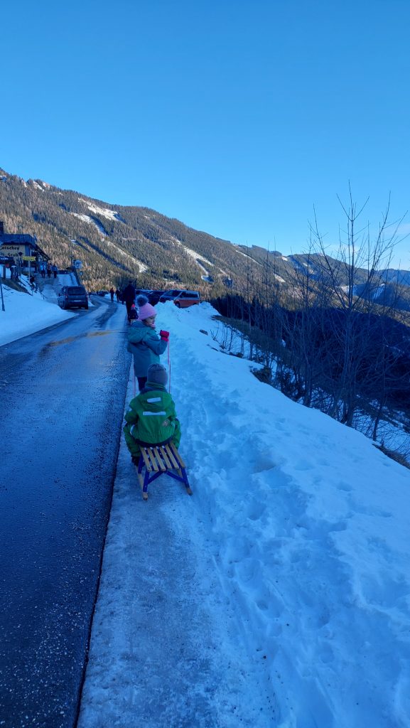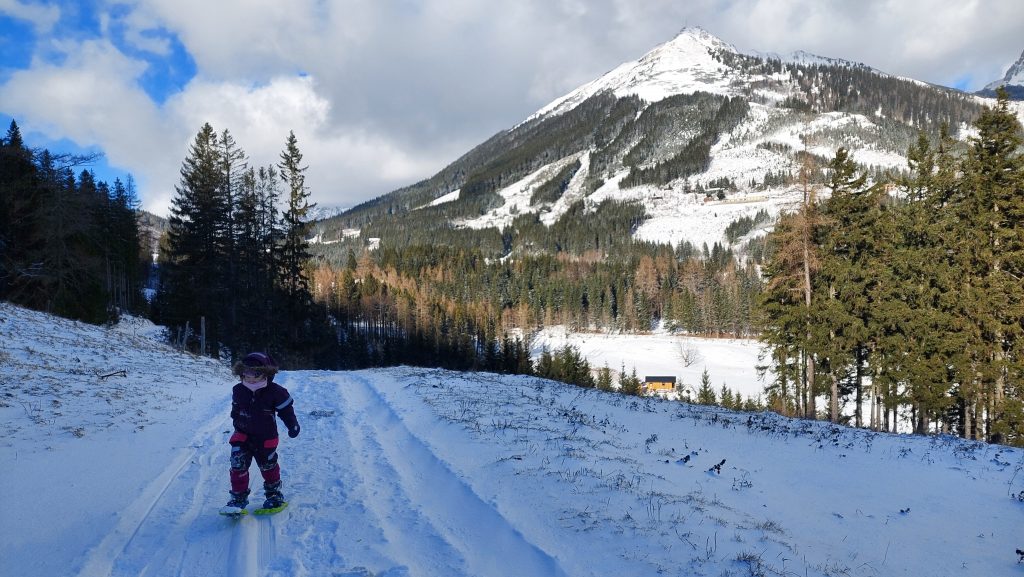 V zimě, pokud je sníh a chcete chodit na procházky/kratší tůry, tak lze jít třeba kolem Leopoldsteinersee (mám o něm článek). Pozor, může se stát, že bude led a jezero nebude možné obejít dokola. Při naší úplně první návštěvě se nám to stalo – jedna strana byla úplně zavřená a na druhé jsme to raději po 300 metrech vzdali, protože bychom asi brzo skončili v jezeru. Běžně ale i během zimy jezero obejít lze.