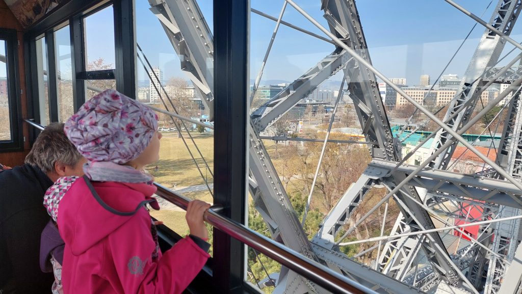 Na kolo jsme neměli vstupenky dopředu, řešili jsme až na místě. https://wienerriesenrad.com/en/home-2/ Fronta nebyla v podstatě žádná, čekali jsme asi 15 minut, než jsme se dostali do „vagónku“. V exponované časy se ale prý může čekat dost dlouho. Proto jsme i projížďkou na kole začínali. Pro děti to byl zajímavý zážitek.