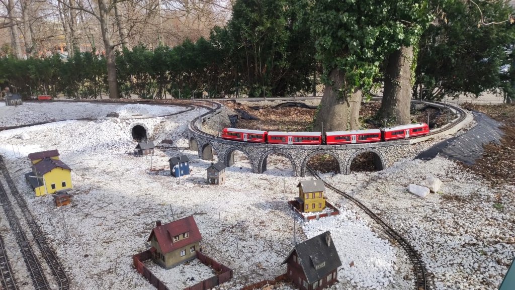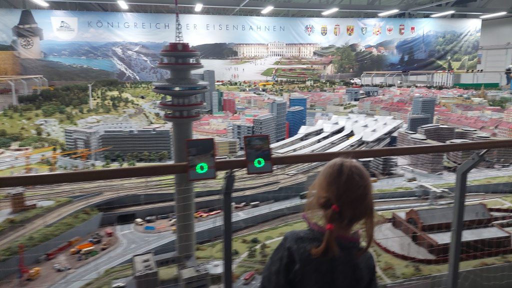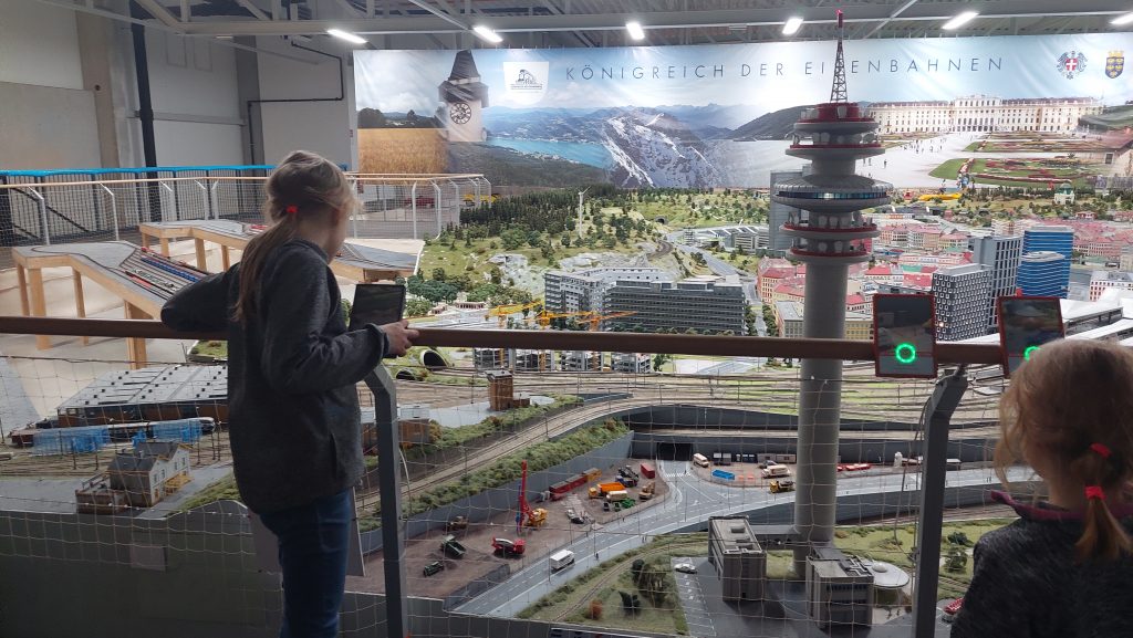 V království železnic (Königreich der Eisenbahnen) byly ale úlně nadšené. https://www.koenigreich-der-eisenbahnen.at/ Tohle „muzeum“ je zaměřené v podstatě jenom na děti. Můžete tu „řídit tramvaj“, projíždět se na elektroautíčkách, vyzkoušet zrcadlové bludiště, hrát si s vláčkodráhou, super je velké vnitřní hřiště s prolézačkami. Nahoře je potom model města, kde si můžete blikat, a potom tu je několik různých autodráh/vláčkodráh, které můžete řídit. Venku je taky menší hřiště. Docela jsme odsud nemohli děti dostat.