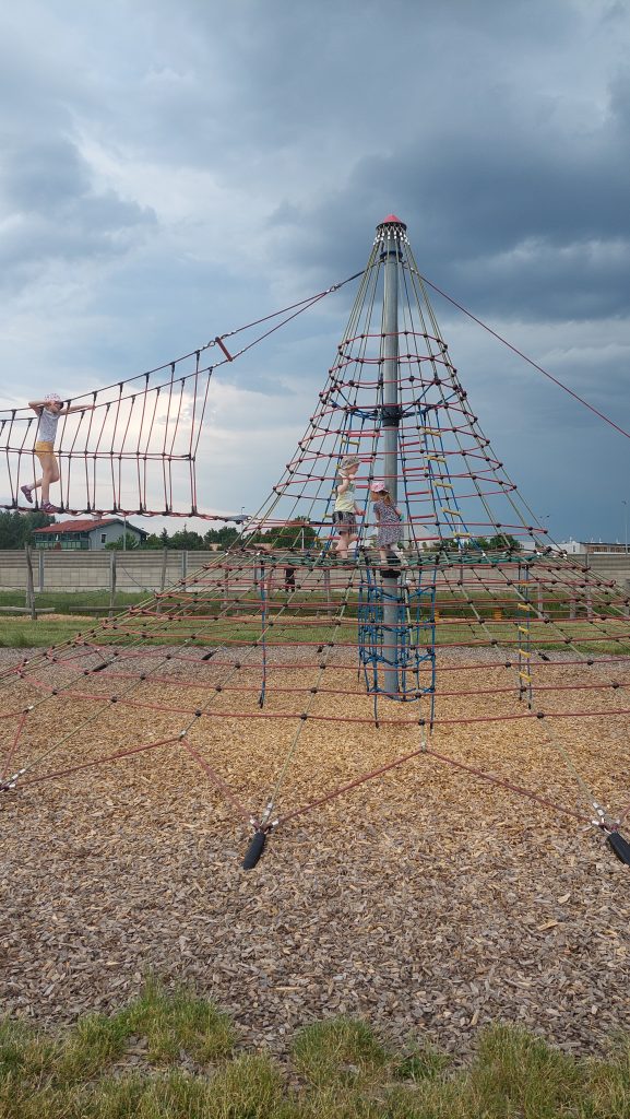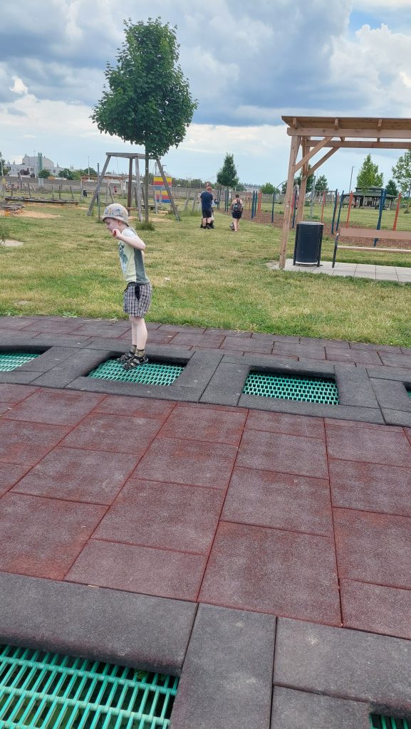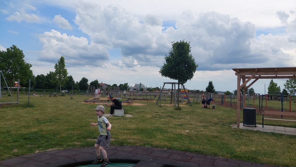 Motorikparky jsou v Rakousku oblíbené. Je to prostě hřiště nejenom pro malé děti. Má obvykle spoustu různých motorických prvků. Byli jsme na něm třeba v Hollabrunu, v Gamlitz a Berndorfu (o všech mám články s každý nabízí něco trochu jiného). Ten ve Vídni má pro nás skvělou polohu. Je hned vedle dálničního sjezdu, naproti Ikee. Platí se tu jenom parkovné (2.5 eur/2 hodiny nebo 5 euro/den), vstup je zdarma. Jsou tu záchody, pítko, dá se koupit třeba zmrzlina. Horký letní den ale není pro návštěvu úplně ideálně (i když menší vodní hřiště je tu také a parkoviště má střechu), protože tu není moc stínu. My tu byli v květnu, nebylo úplně vedro, ale i tak už to bylo na hraně. Plánujeme se sem vrátit zase v zimě.
