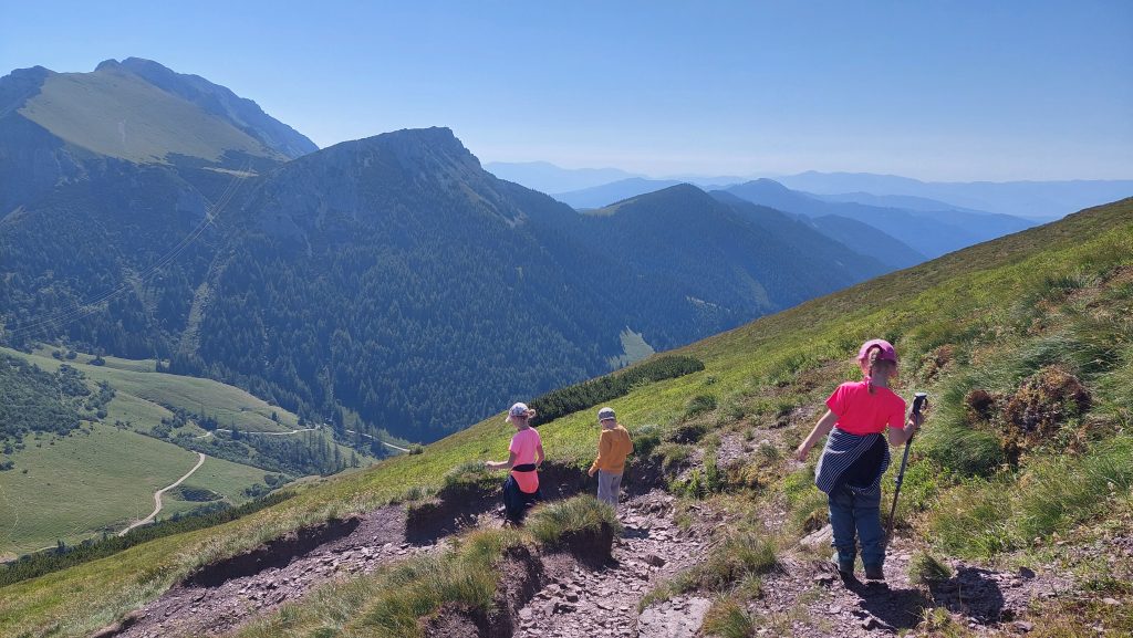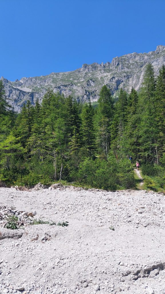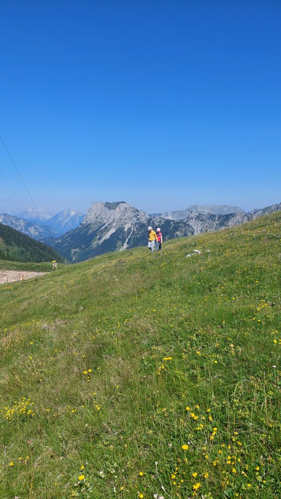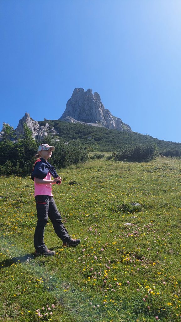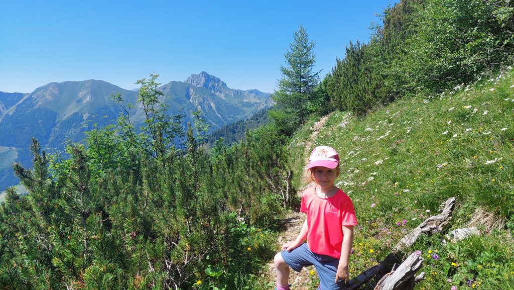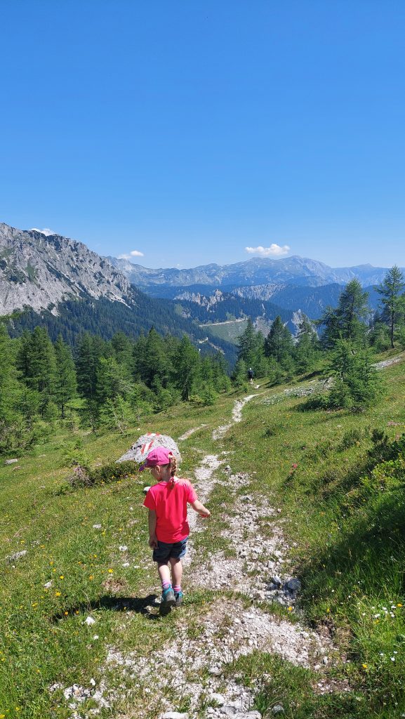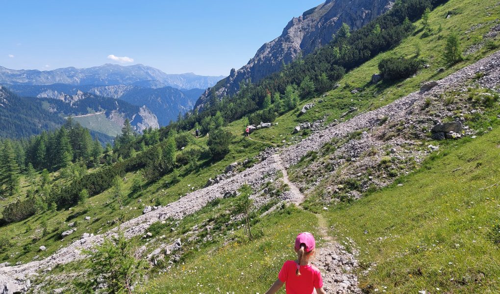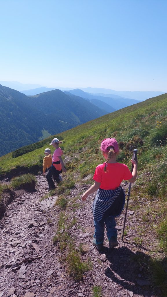Na Polster jsme vyjeli lanovkou (v rámci Steiermark card jsme měli tuto sezónu neomezeně výjezdů). I když je trasa skoro celou dobu z kopce nebo po rovině, tak rozhodně není nenáročná. Přece jenom se tam klesá 1200 výškových metrů. Mezi Hirscheggsattel a Lamingsattel se najde několik míst, kde se hodí mít i hůlky. Od Lamingsattel se cesta postupně stále zlepšuje.