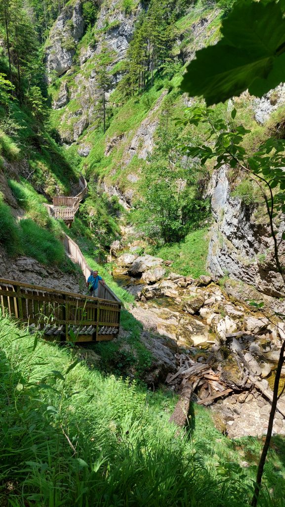 Soutěska Wasserlochklamm je asi 45 minut jízdy od Vordernbergu a jedná se o jednu z hojně navštěvovaných zajímavostí v širokém okolí. Autobusy Čechů tam nejsou výjimkou a na řece Salze je taky velký provoz. Parkování je zdarma, info o vstupném zde, my měli zahrnuto v Steiermark card.