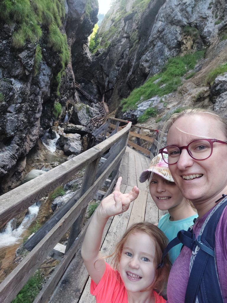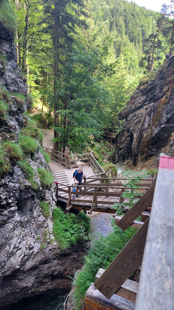 Když srovnám Wörschachklamm a Wasserlochklamm, tak se mi více líbila právě Wörschachklamm, protože se dost bojím výšek, schodů s průhledy a moc nezvládám rozhledy a Wörschachklamm pro mě byla více v pohodě, na Wasserlochklamm jsem už měla dost problém (a naštěstí to tam chtěli děti otočit zpět). Dětem se hodně libíla i část kolem zříceniny.