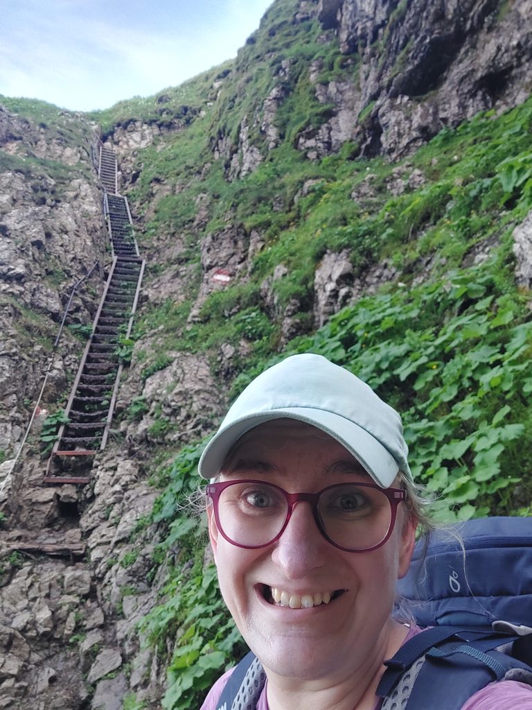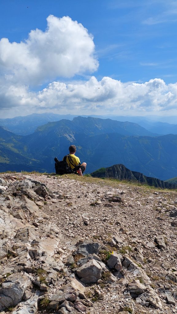 Ještě bych upozornila na to, že se hora nachází kousek od dolu Erzberg, kde několikrát týdně probíhají odstřely, což jsme zrovna zažili. Pokud uslyšíte dlouhé hlasité zatroubení, tak zpozorněte, protože do pár minut přijde odstřel a ten je fakt i nahoře hlasitý a můžete se ho dost leknout. Já se lekla pořádně, že jsem skoro nadskočila a jediné štěstí, že jsme už byli těsně za tím žebříkem. Odstřely jsou většinou ve všední dny.