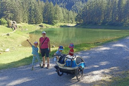 Na začátek jsme dojeli tentokrát autobusem. Lze zaparkovat zadarmo na parkovišti a potom si auto vyzvednout autobusem/na kole. Trasu jsem šli bez kočárku, ale asi by to šlo v pohodě i s kočárkem. V bodě 2 byly k vidění kozy, které bydlí v domečku nad cestou. Těsně před bodem 3 byl Kneippův chodník. Potkali jsme …