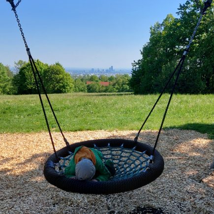 O kopečku Guglzipf kousek pod Vídní jsem četla mockrát. Je to opravdu oblíbené výletní místo s dětmi nejen Vídeňáků. Tak jsme se tu konečně jednou zastavili. Parkovali jsme za hasičárnou, parkování o víkendu bylo zdarma (ale v týdnu myslím i taky). Cesta do kopce nám rychle utekla, protože je prokládaná hřišťátky. Děti byly nadšené. A …